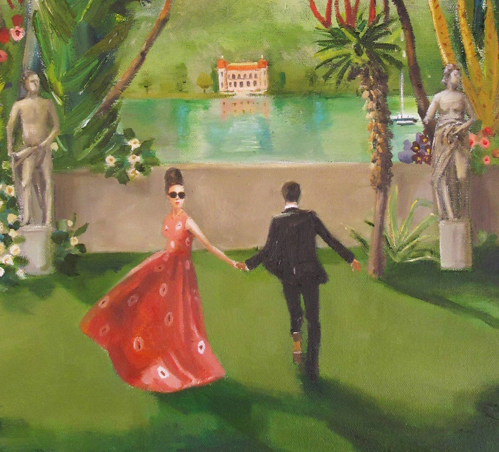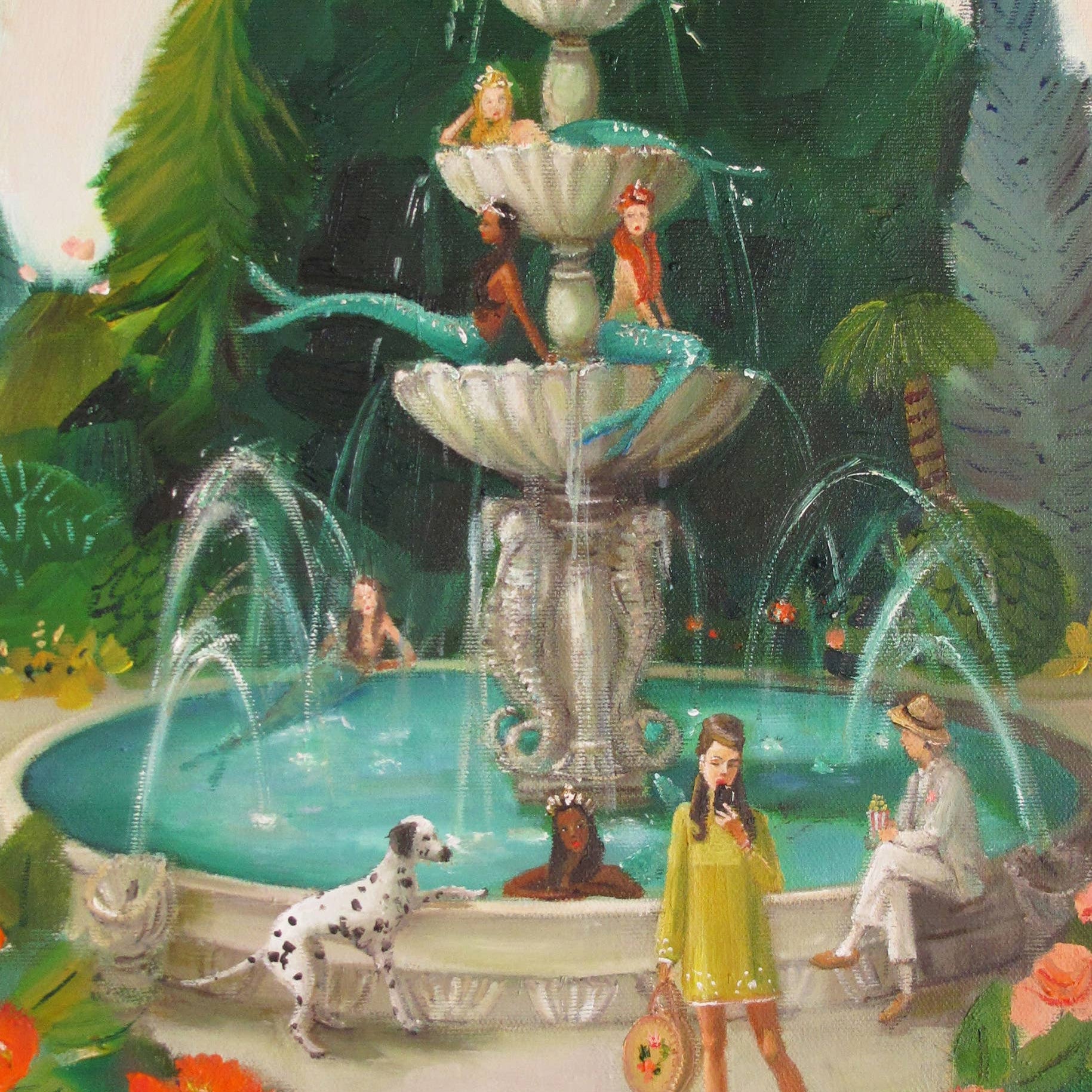 JANET HILL STUDIO - Selfie At The Mermaid Public Fountain Art Print