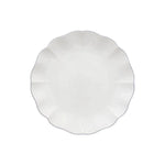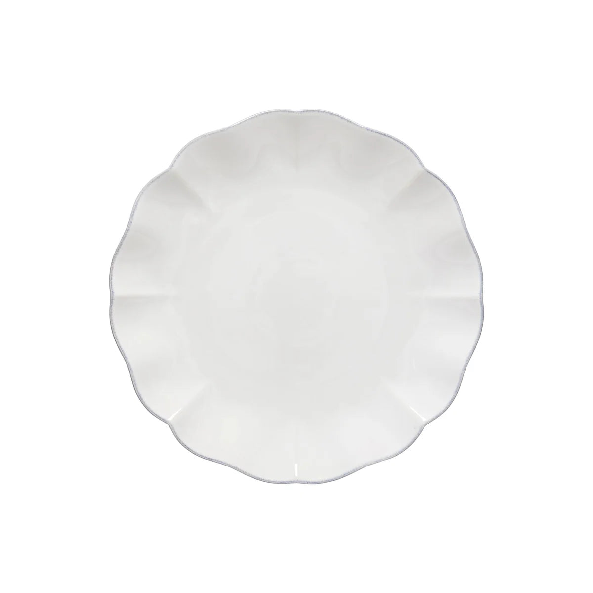 The Rosa Dinner Plate, crafted from fine stoneware in Portugal, stands out with its glossy glaze and unique finish. Its cut-out details and contours, highlighted by a delicate hand-painted rim, create an elegant, contemporary, and feminine collection.