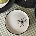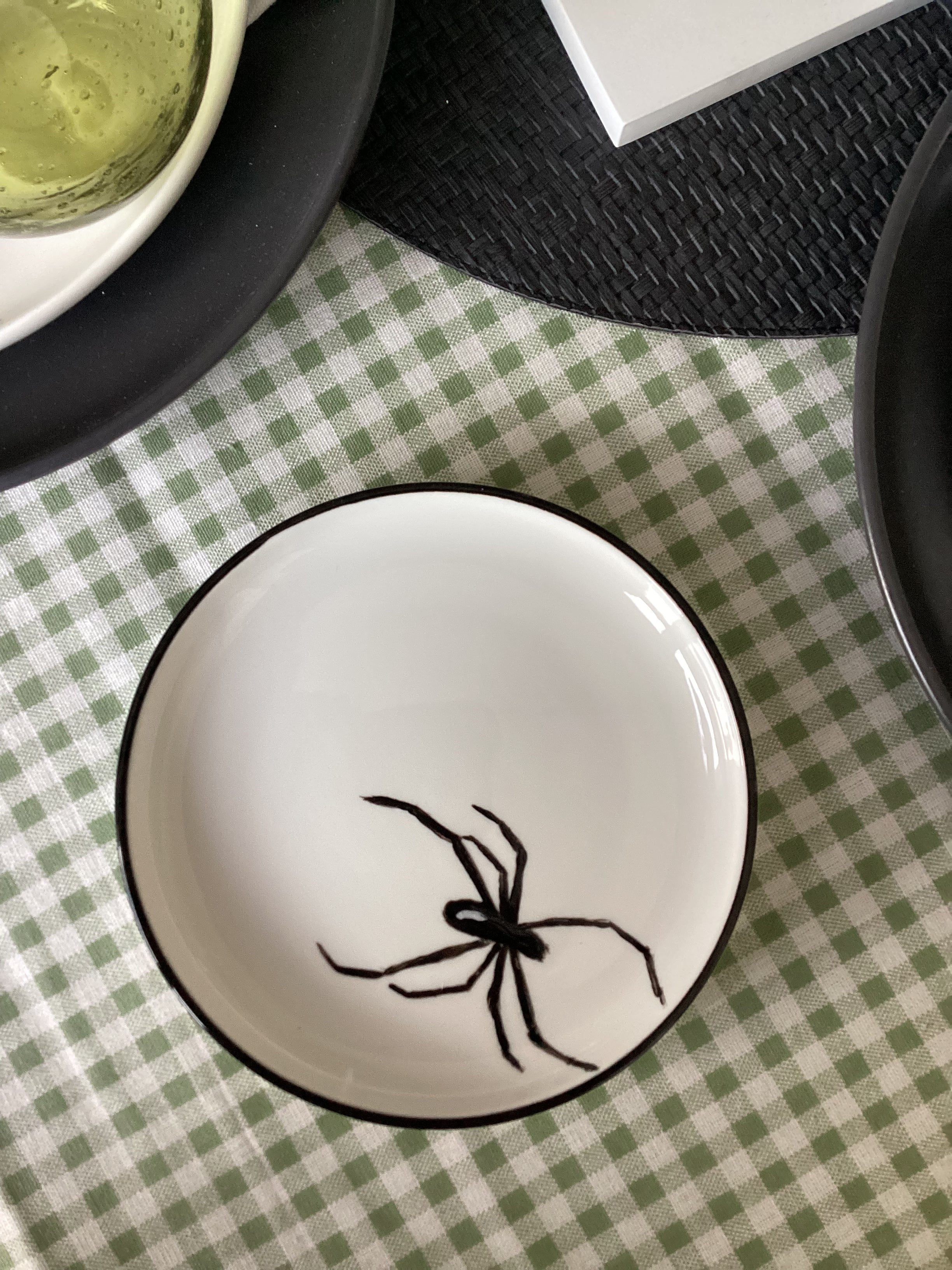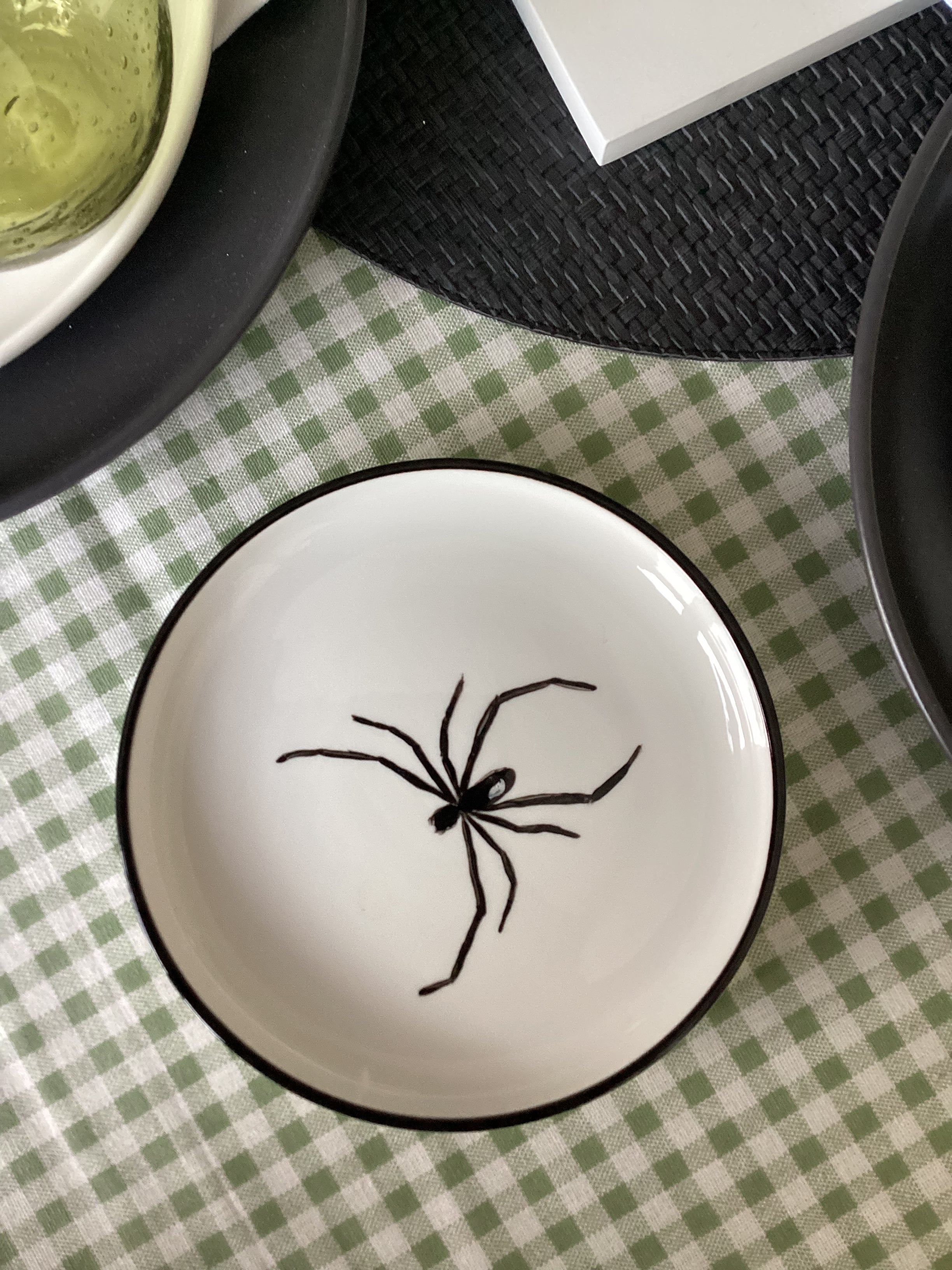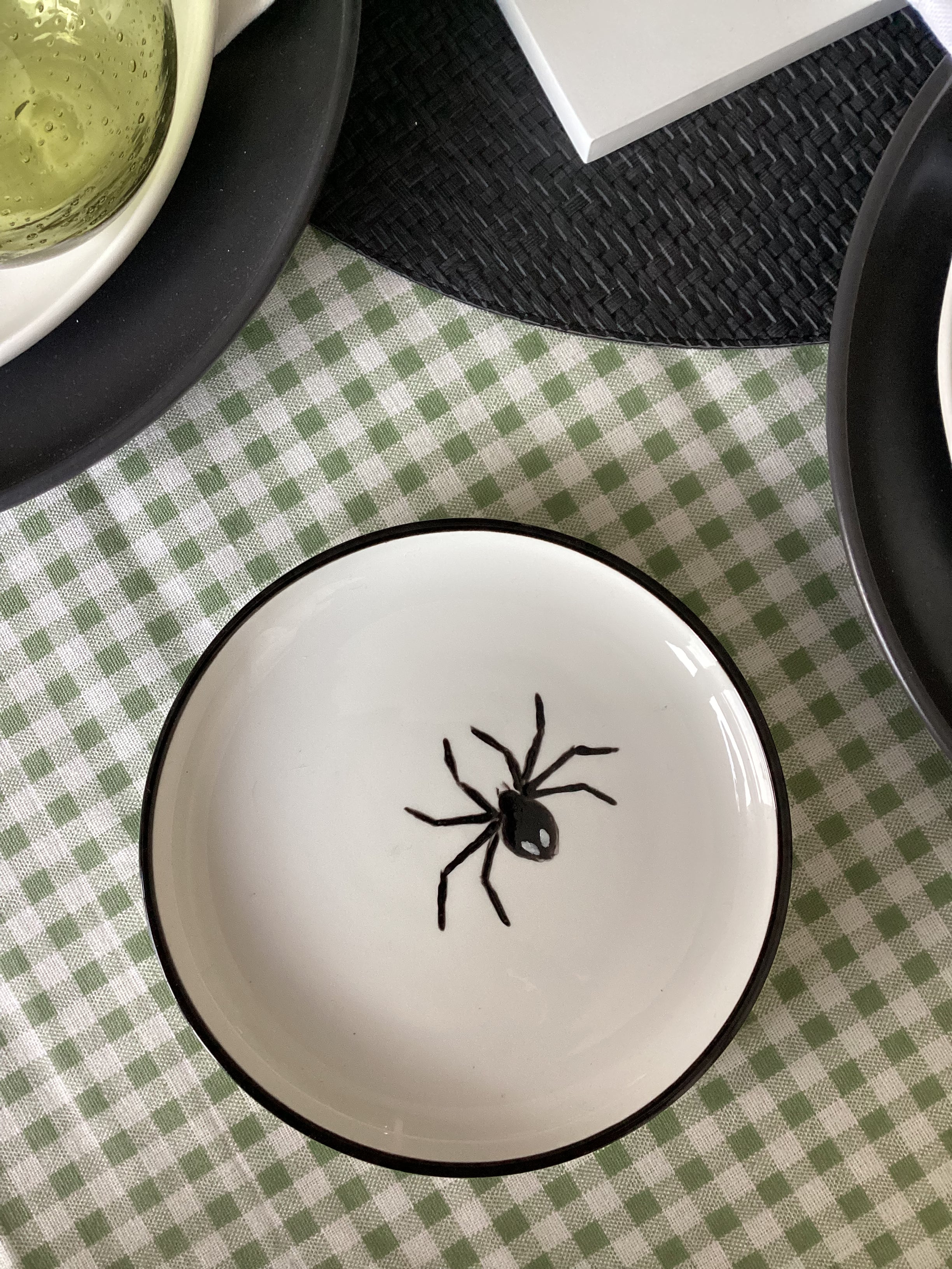 Hand-painted spider plate — a fun and eye-catching accent for Halloween entertaining or for anyone who loves a touch of the unexpected in their décor. Hand was only, use of knives with this product is not recommended.